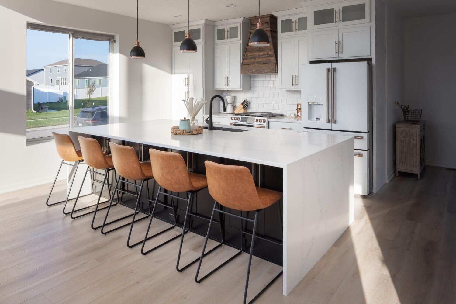 Placed at the heart of your cooking space, the large kitchen island provides extra prep and serving room.