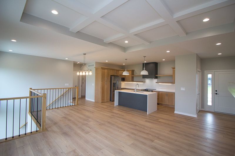 New walk-up floor plan by Wasser Builders: this sprawling, split bedroom ranch features an open concept living space with coffered ceilings in the living room, a beautiful fireplace & a large island to gather around in the kitchen. The kitchen will come complete w/all appliances & also has a surprise... a hidden pantry! The primary suite also features a coffered ceiling & comes with its own en-suite bath & walk in closet. The main level also features 2 more bedrooms, a 2nd bathroom, lots of closet space & a laundry/mud room right off of the 3 stall garage. In the finished basement you will find 2 more bedrooms, a large rec room & a 3rd bathroom.